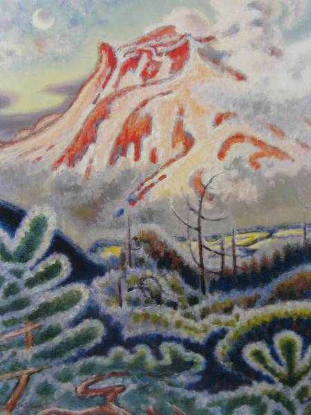 - 小山敬三、『紅浅間有明月』、希少画集画、高級新品額・額装付、状態良好、送料無料