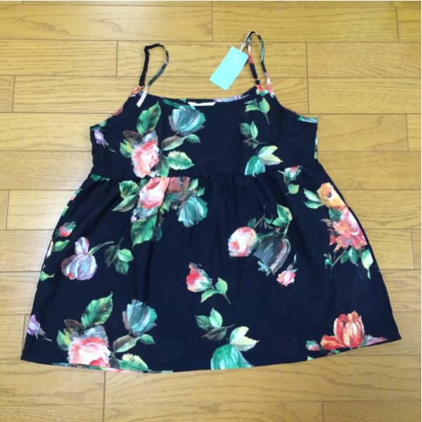 - 送料無料■新品タグ付き■REMUS ネイビーブラック ローズ キャミソール サイズM 日本製