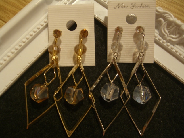 - 即決☆新品2色セット☆大きめ♪ ダブル ダイヤ型 スイング デザイン ピアス シルバー ゴールド