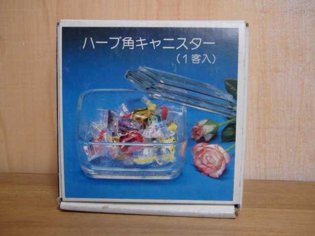 - 昭和レトロ ハーブ角キャニスター キャンディー容れ 曽我ガラス 未使用