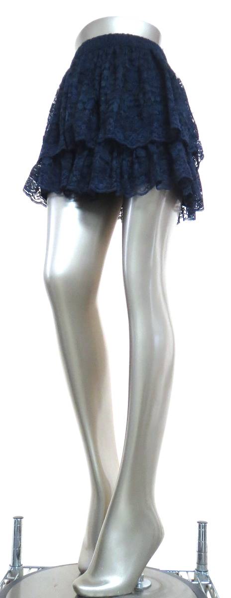 - 二点以上落札で送料無料!A048 Abercrombie Kids アバクロ キッズ♪ 紺のレース調ミニスカート L/14 ネイビー フレアー レディース