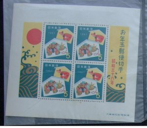 - 未使用 昔の切手 年賀切手昭和36年用 お年玉小型シート 赤べこ