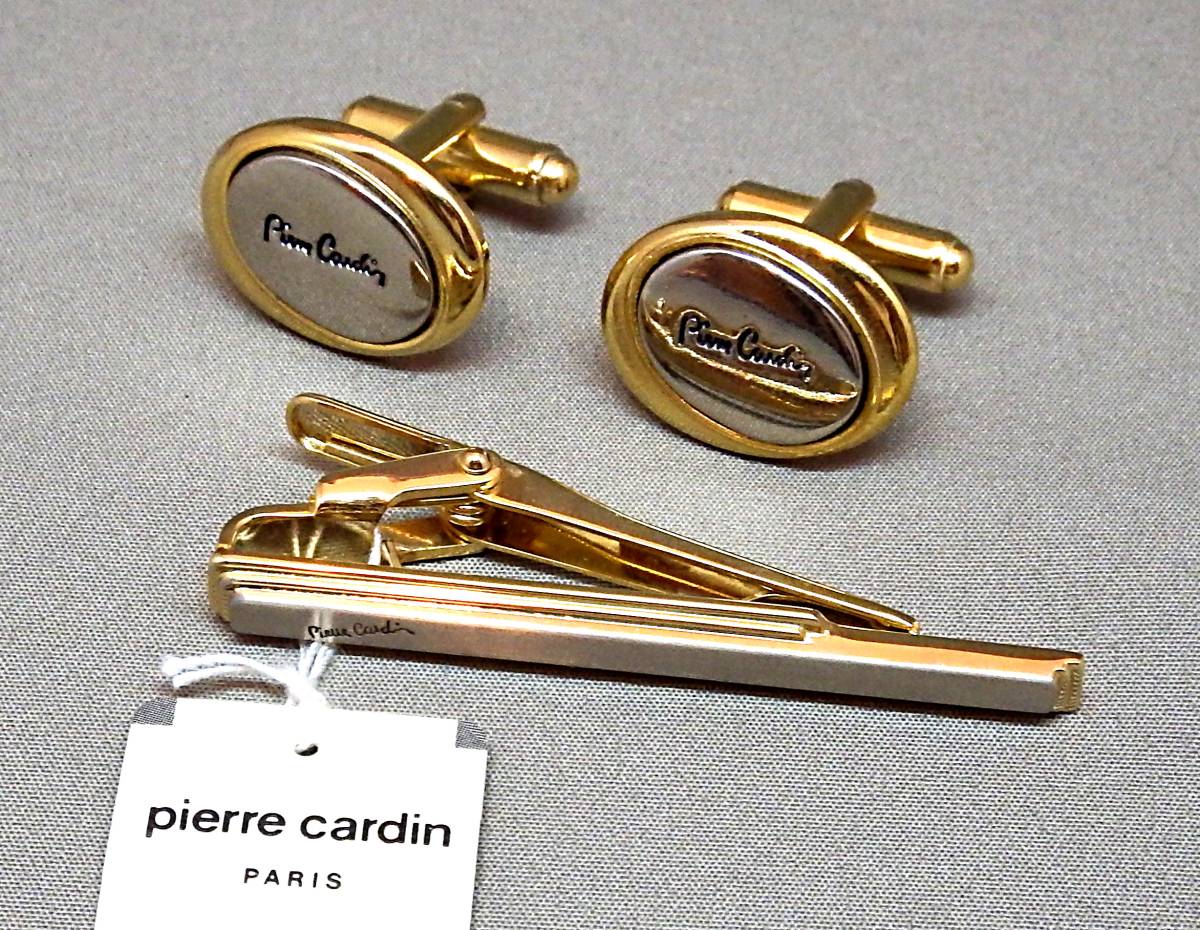 - EU-9010■pierre cardin ピエールカルダン カフス&タイバー セット 金色/銀色 タグ付き 中古
