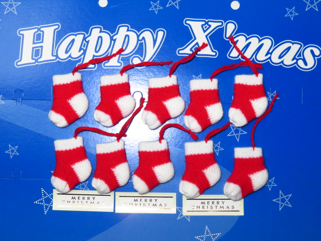 - 【☆クリスマスミニニットオーナメント10個☆】25 ホワイト/レッドソックス 白/赤 靴下 ギフトボックス 販売促進 販促おまけプレゼントに^^