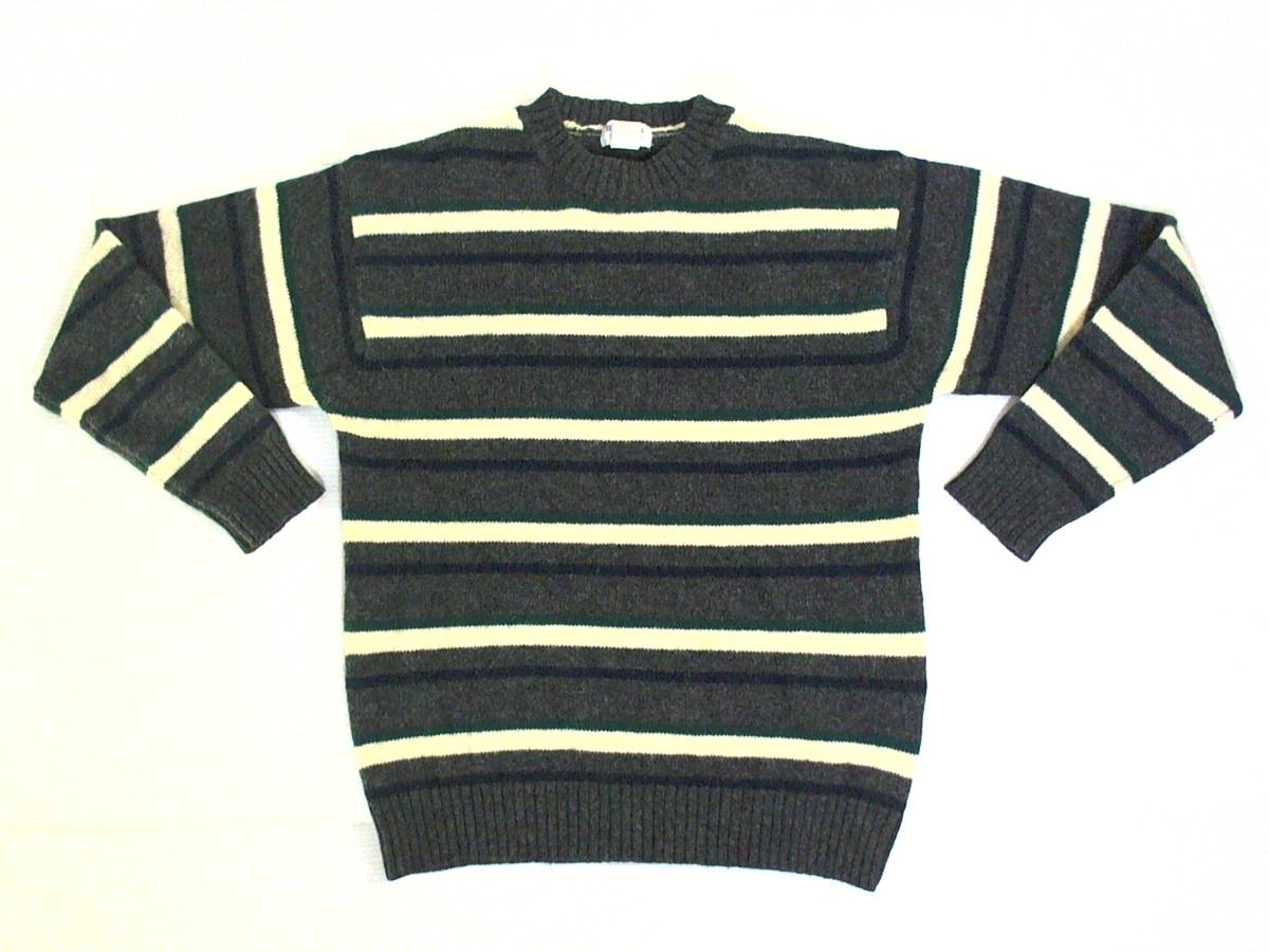 - ☆※微難有★ビームス【BEAMS】ウールニット セーター プルオーバー M チャコール 白 ボーダー
