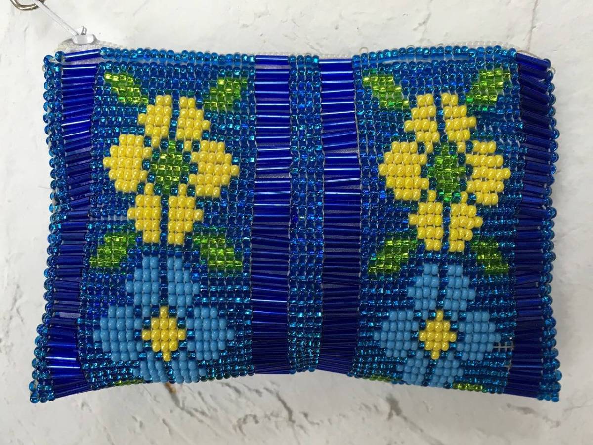 - 新品 ハンドメイド ビーズ織り 小銭入れ 小物入れ ガラスビーズ ビーズワーク コインパス フラワー