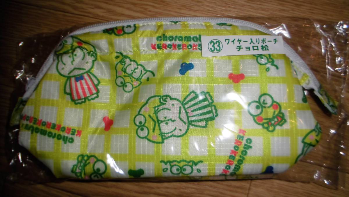> 即決☆値下新品☆おそ松さん× サンリオ コラボ ワイヤー入りポーチ チョロ松 けろけろけろっぴ Sanrio characters くじ 小物入れ 非売品♪