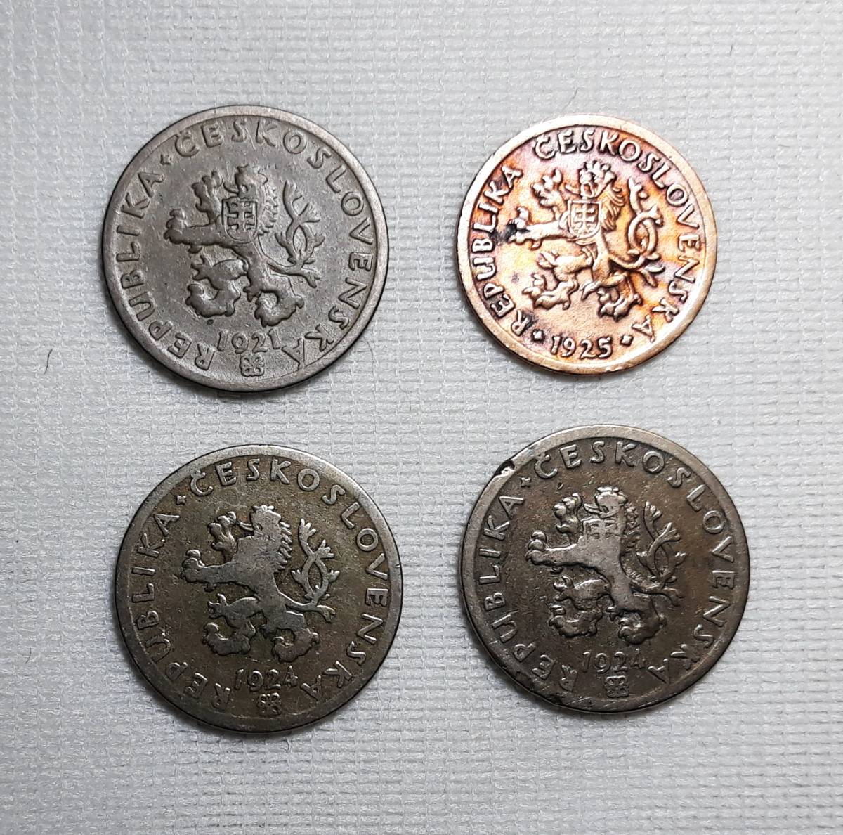 - 1921年~ チェコスロバキア 古い硬貨 4枚 ◆e-94