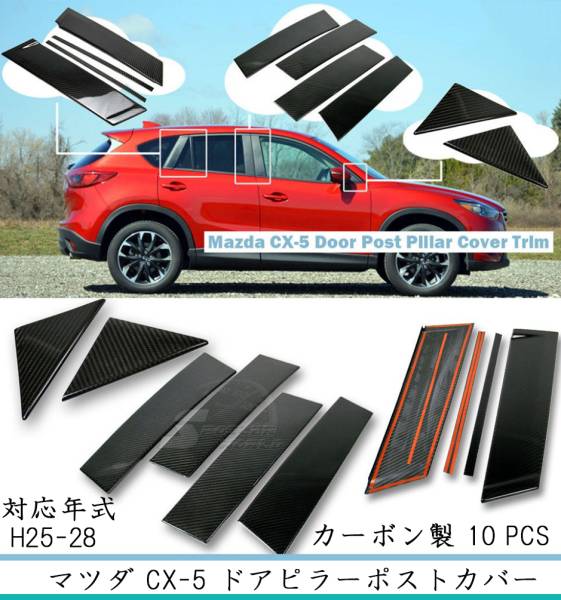 - マツダ CX-5 カーボン サイド ドア ピラー ポスト カバー 10 PCS