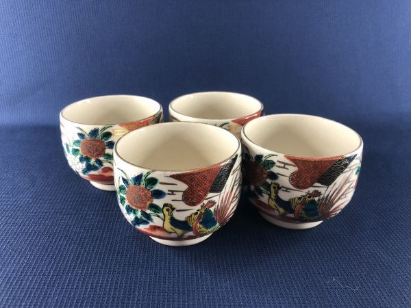 - 並品★ 九谷焼 九谷暁堂 手塗り 湯呑み 4客 セット 難あり 管理1804 D-18