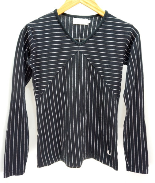 > フレッドペリー ☆ FRED PERRY レディース ブラック × ホワイト ストライプ 長袖 カットソー ロゴ刺繍 細身 M タイトな大人スタイル♪■AB