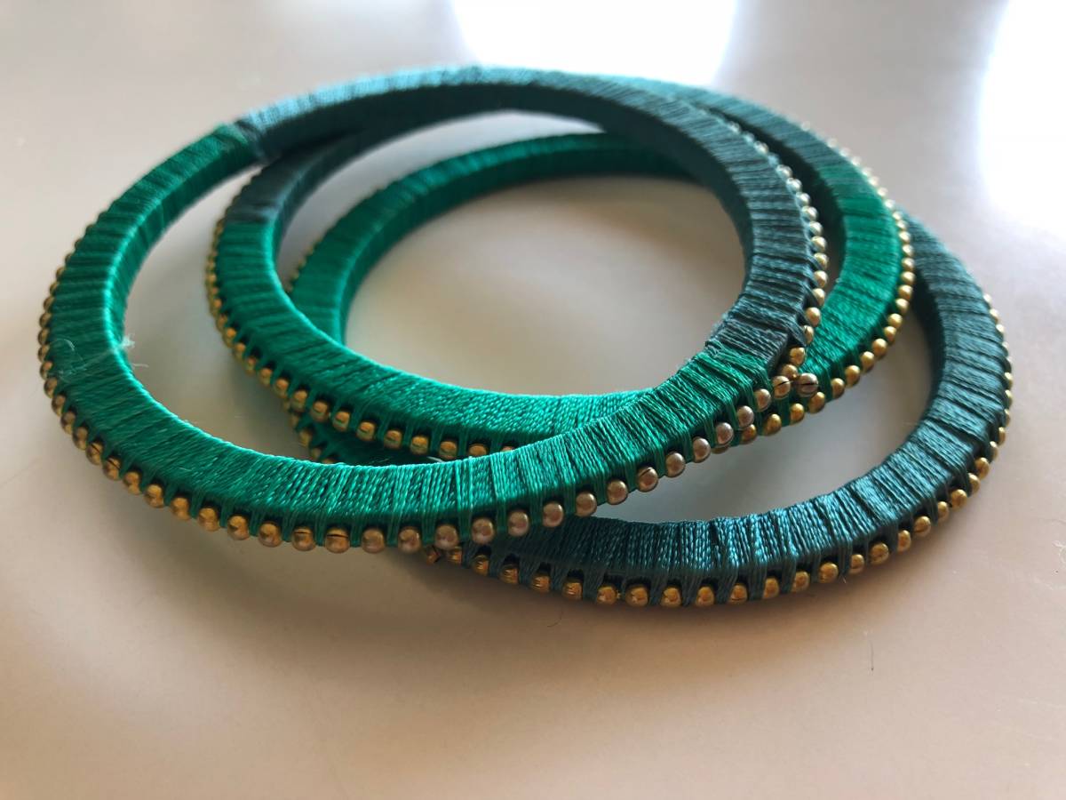 - 3つセット!即決 新品未使用 格安 ナノユニバース 購入 アーティスト バングル 刺繍糸 真鍮 丸 スタッズ グリーン 緑 クリックポスト発送