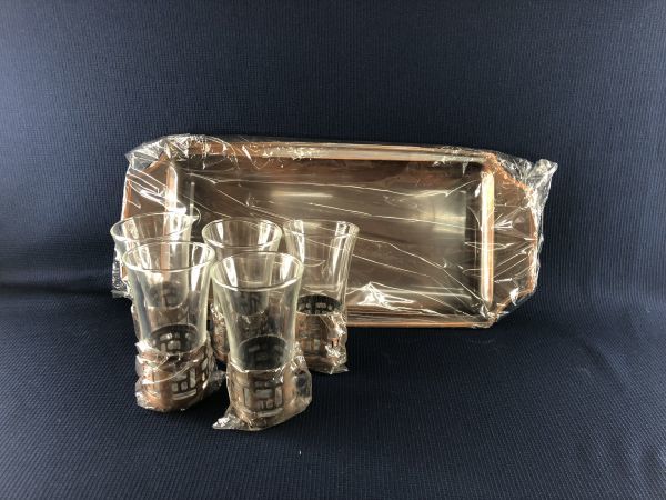 - 未使用品★ ブルームーン ブロンズビアーセット ブロンズトレー グラス 5 客 セット 箱あり管理1806 J-11