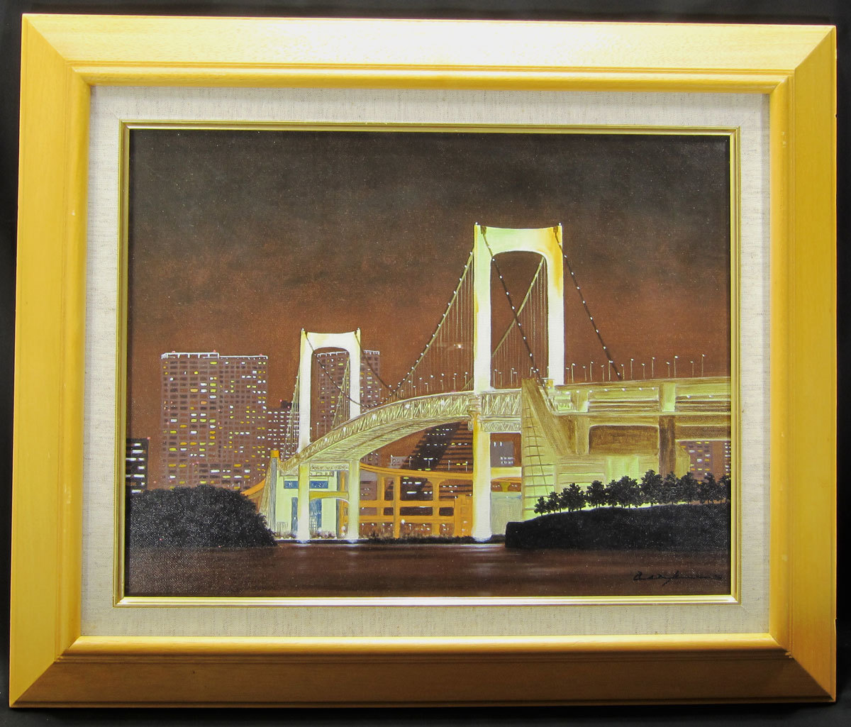 - 朝隈 敏彦 「ベイブリッジ」 油彩 真作保証 額装 F6号