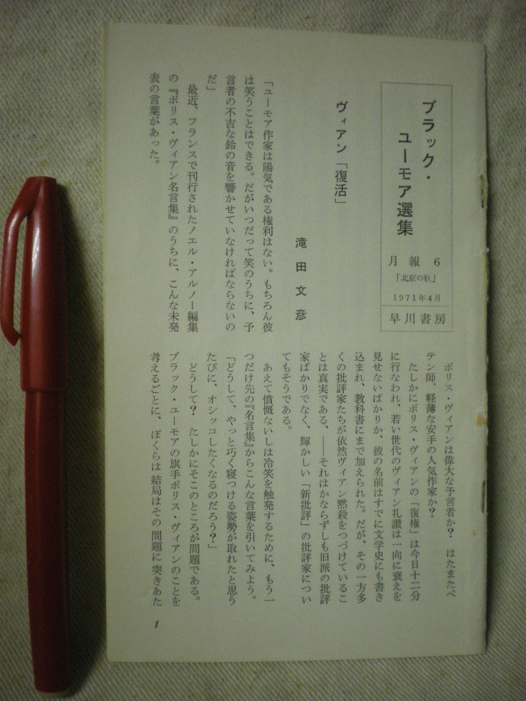 - [月報] 月報6「北京の秋」 滝田文彦 /山下論一 早川書房版 ブラック・ユーモア選集完結編「外国編(短編集)」の月報 1971.4 えろちか