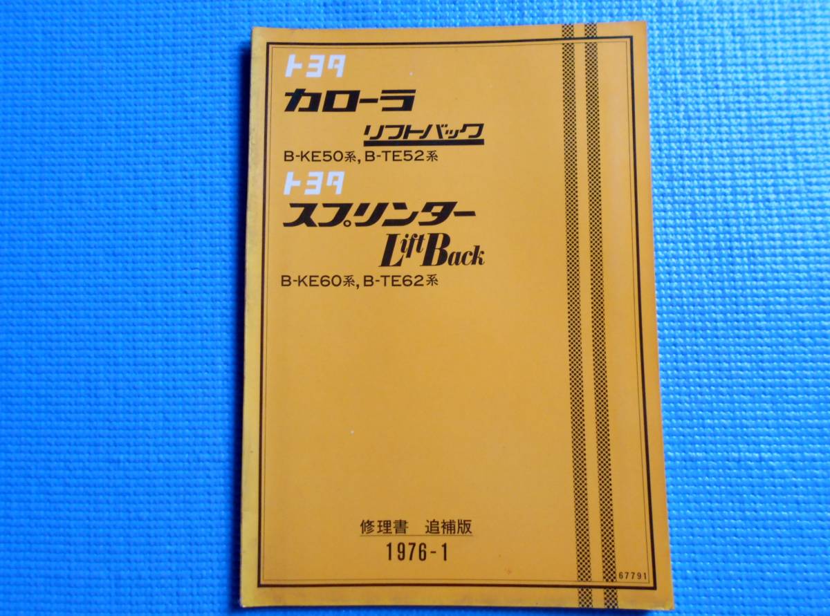 > トヨタ カローラ リフトバックB-KE50系 B-TE52系 スプリンター Lift Back B-KE60系 B-TE62系 修理書 追補版 1976年1月