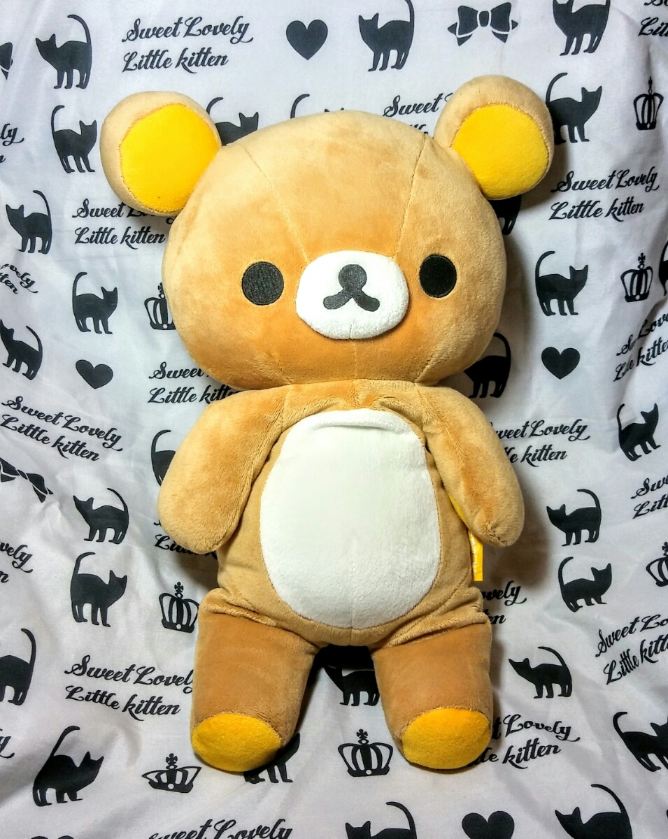 - 【触り心地バツグン♪】ふかふかスベスベ マイクロファイバー生地 リラックマ 37㎝ ぬいぐるみ 背中に小さな小物入れ付き♪