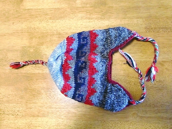 - 美品☆帽子 ぼうし☆100%WOOL グレー×赤×紺 フリンジあり MADA IN NEPAL