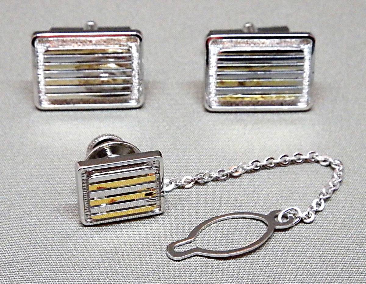 - EU-9567■銀製 シルバー カフス&タイタック 長方形 中古