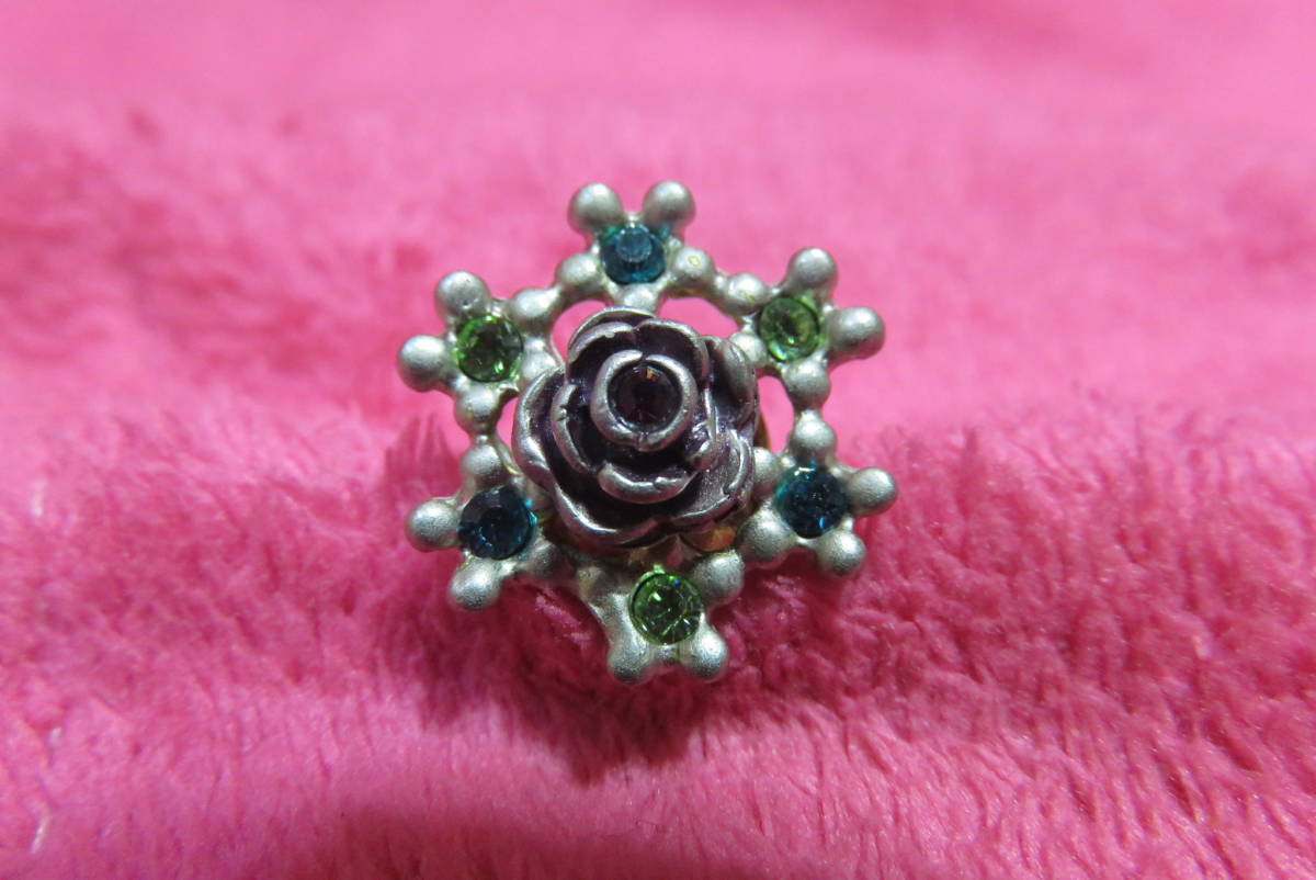 - F7242 ブローチ ピンズ 薔薇 バラ ローズ ラインストーン アンティーク調