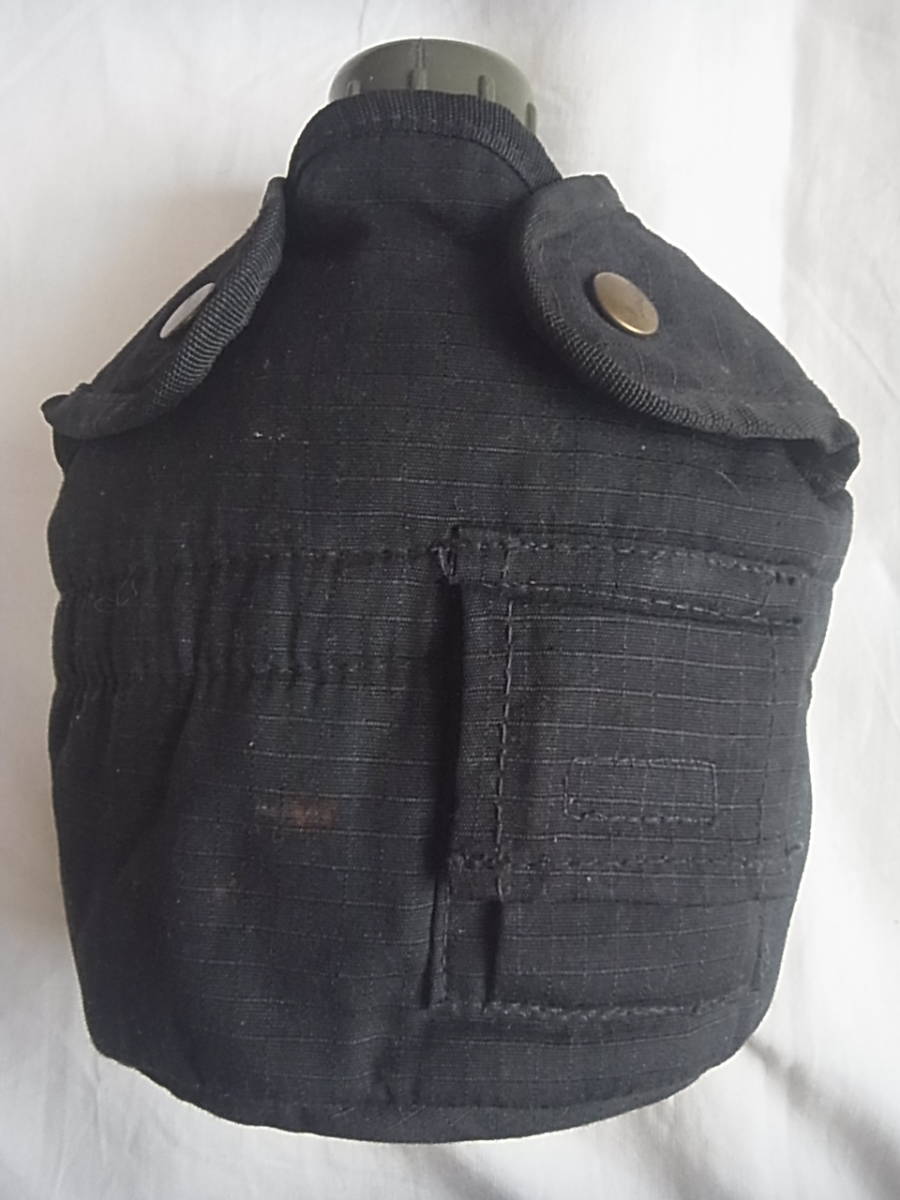 > 実物 南アフリカ軍 警察 特殊部隊アーバンアサルトベスト用 リップストップブラックカバー付き1リットル水筒 キャンティーン RECCE SAP-STF