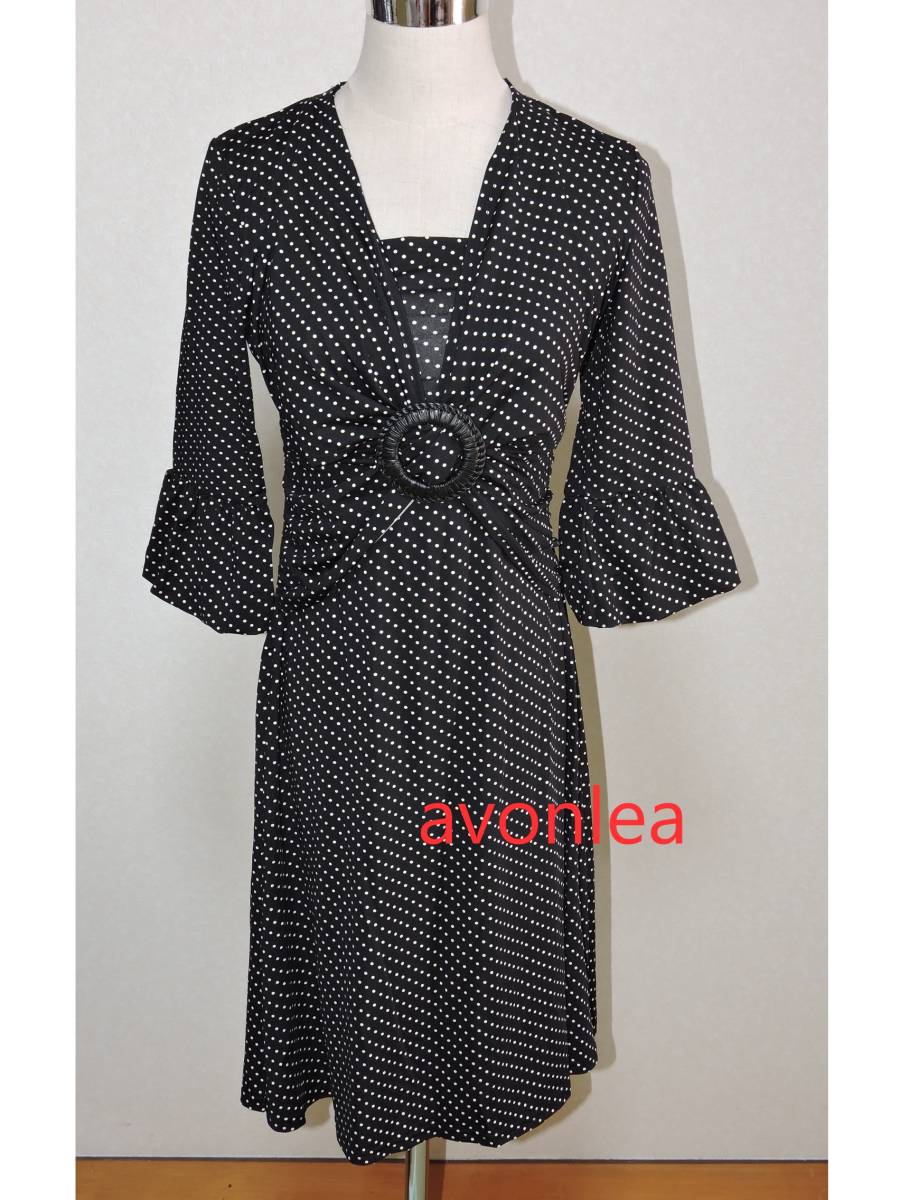 > ティアクラッセ リングモチーフ ジャージーワンピース ドット柄 ブラック M バルーンスリーブ 伸縮素材ですっきりシルエット♪(水玉/黒