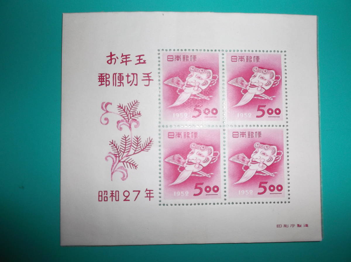 - お年玉郵便切手 小型シート 昭和 27年用 おきなの面 1952.1.20 New Year Greeting Souvenir Sheet of Stamp
