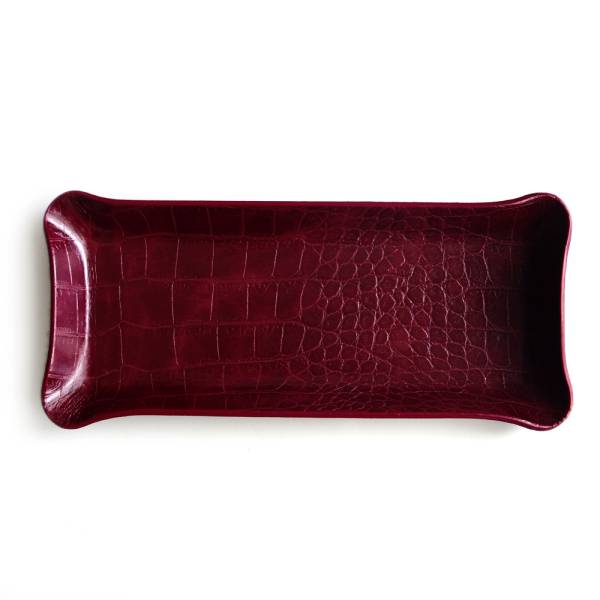 - 送料込み★お手入れいらずリサイクルレザーペントレイカルトン マネートレー小物入れ アクセサリー リモコン 腕時計 鍵 収納★型押ボルドー