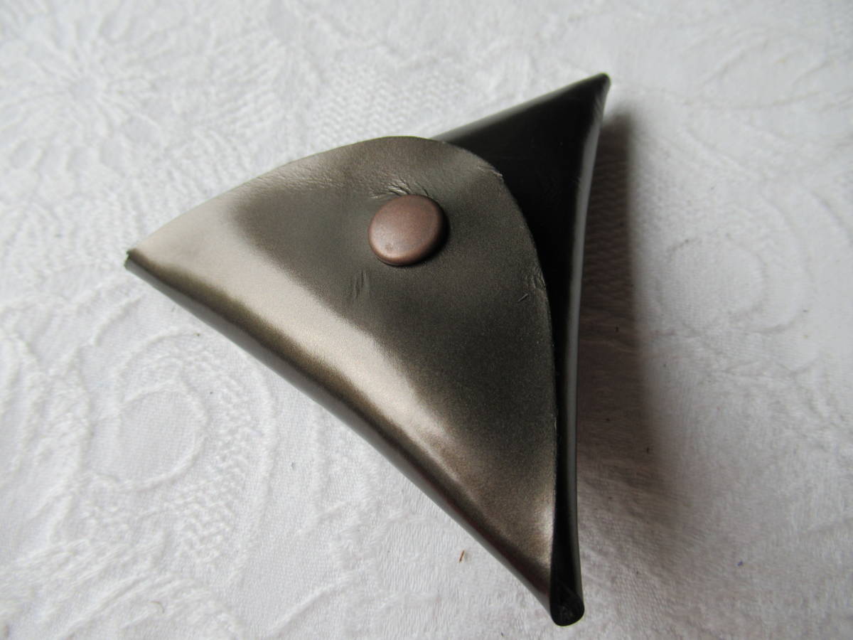 - 手作り 本革製三角財布 コインケース 小銭入れ ツヤありカーキ