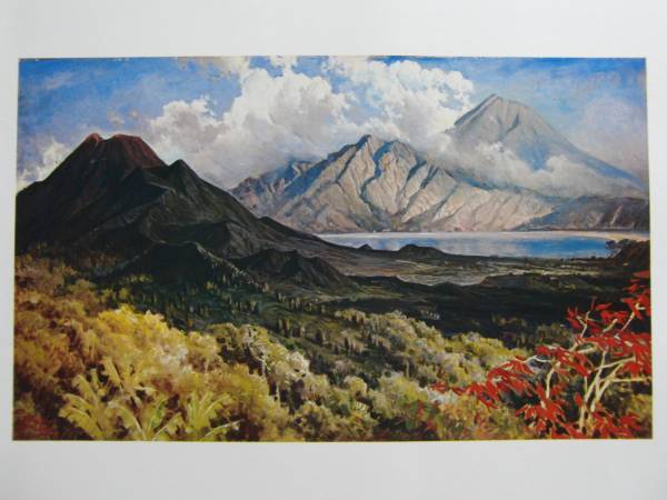 - スカルノ大統領所蔵、バスキ アブドウラ、キンタマニ風景、希少画集画、新品額装付、choco