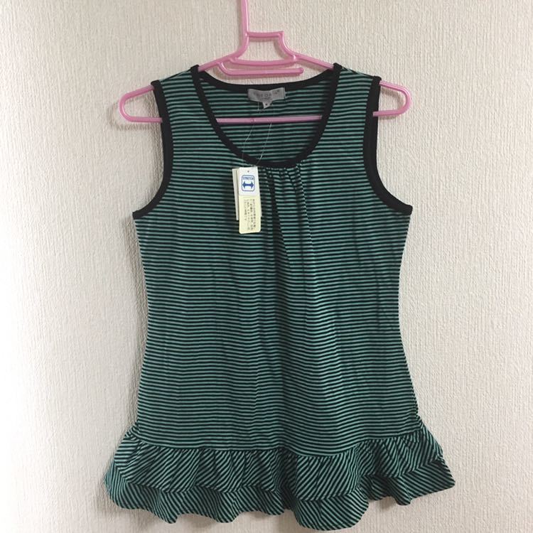- フリル付き ボーダー柄ノースリーブチュニック