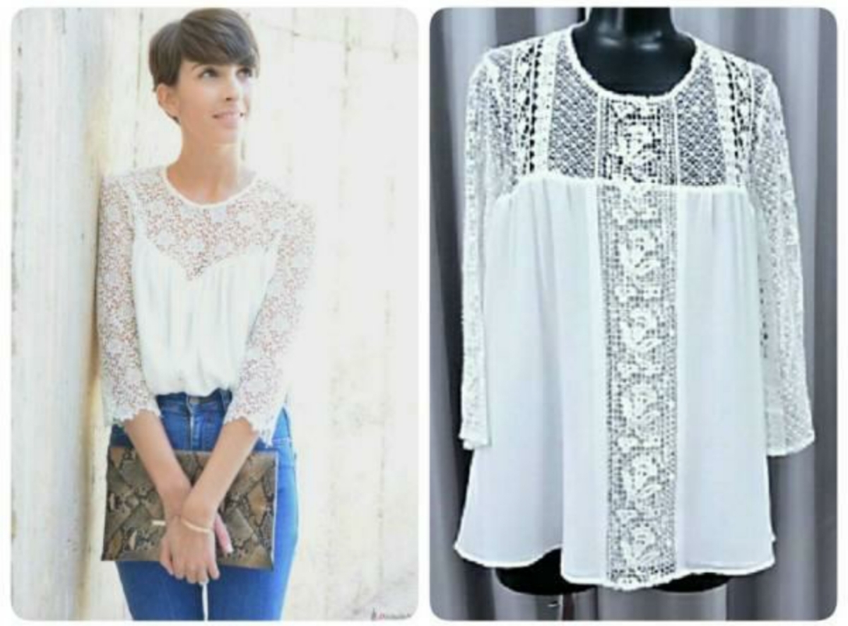 - 本物 ZARA ザラ レース切り替え シフォン 八分丈 カットソー