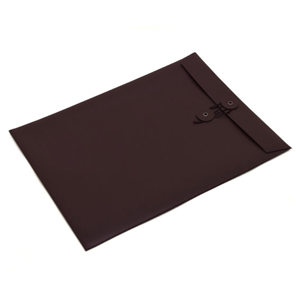 - 送料込み★お手入れいらずのリサイクルレザーで作った綴じ紐付A4サイズ封筒書類入れ★チョコ