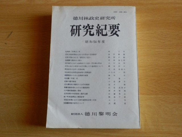 - 研究紀要 徳川林政史研究所 昭和54年度 昭和55年発行 財団法人 徳川黎明会