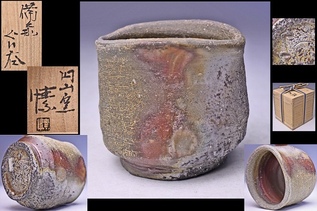 > 金重まこと ★ 備前窯変沓ぐい呑 ★ 共箱 ★ 酒器 ★ メロン肌に焦げと豪快な景色が見事な上手作 ★ 検 金重素山 人間国宝 金重陶陽