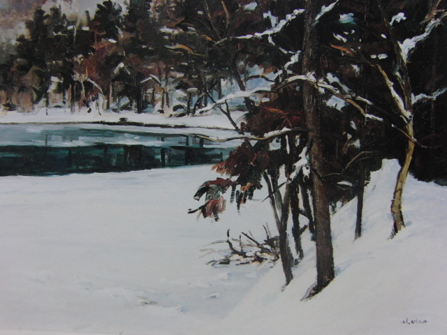 - 岡 宏【冬の中網湖】、希少画集画、状態良好、新品高級額装付、送料無料、美品、soma