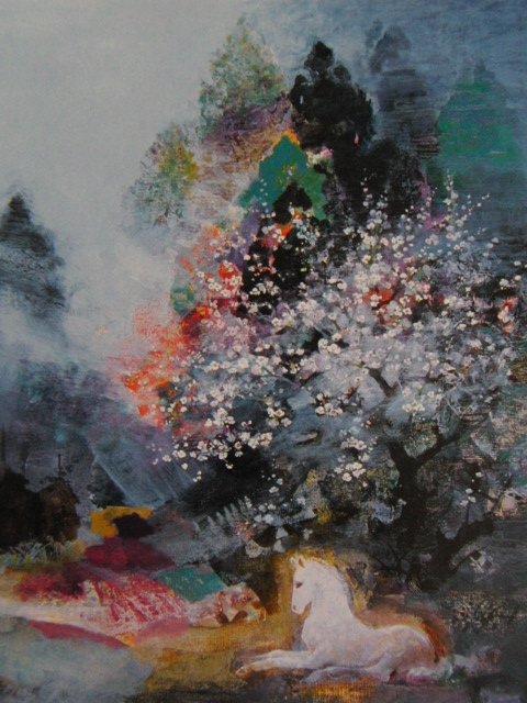 - 上橋薫、早春の彩・白い仔馬、希少画な集画、状態良好、新品高級額・額装付、送料無料、soma