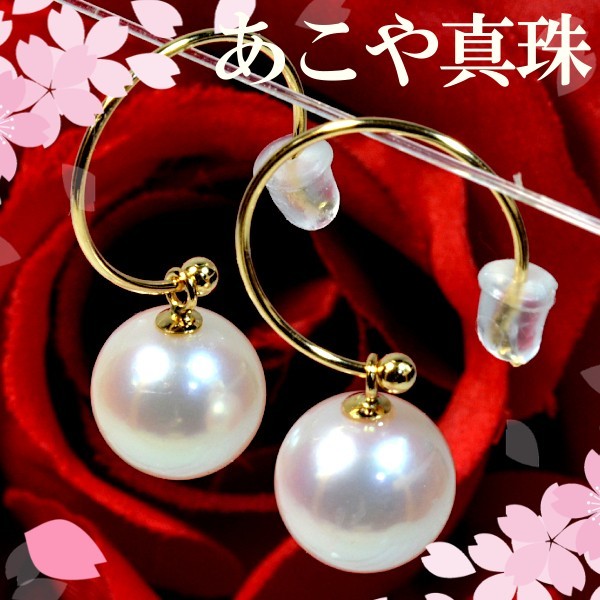 > 【早い者勝ち卸特価】【新品即決】K18あこや真珠ピアス 約8.5mm 6月誕生石パール 揺れて可愛いプレゼントにもオススメです♪ 本真珠 EM258
