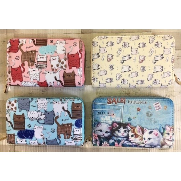 - 送料無料!可愛い!ネコプリントラウンドファスナータイプ財布(4柄から)1個