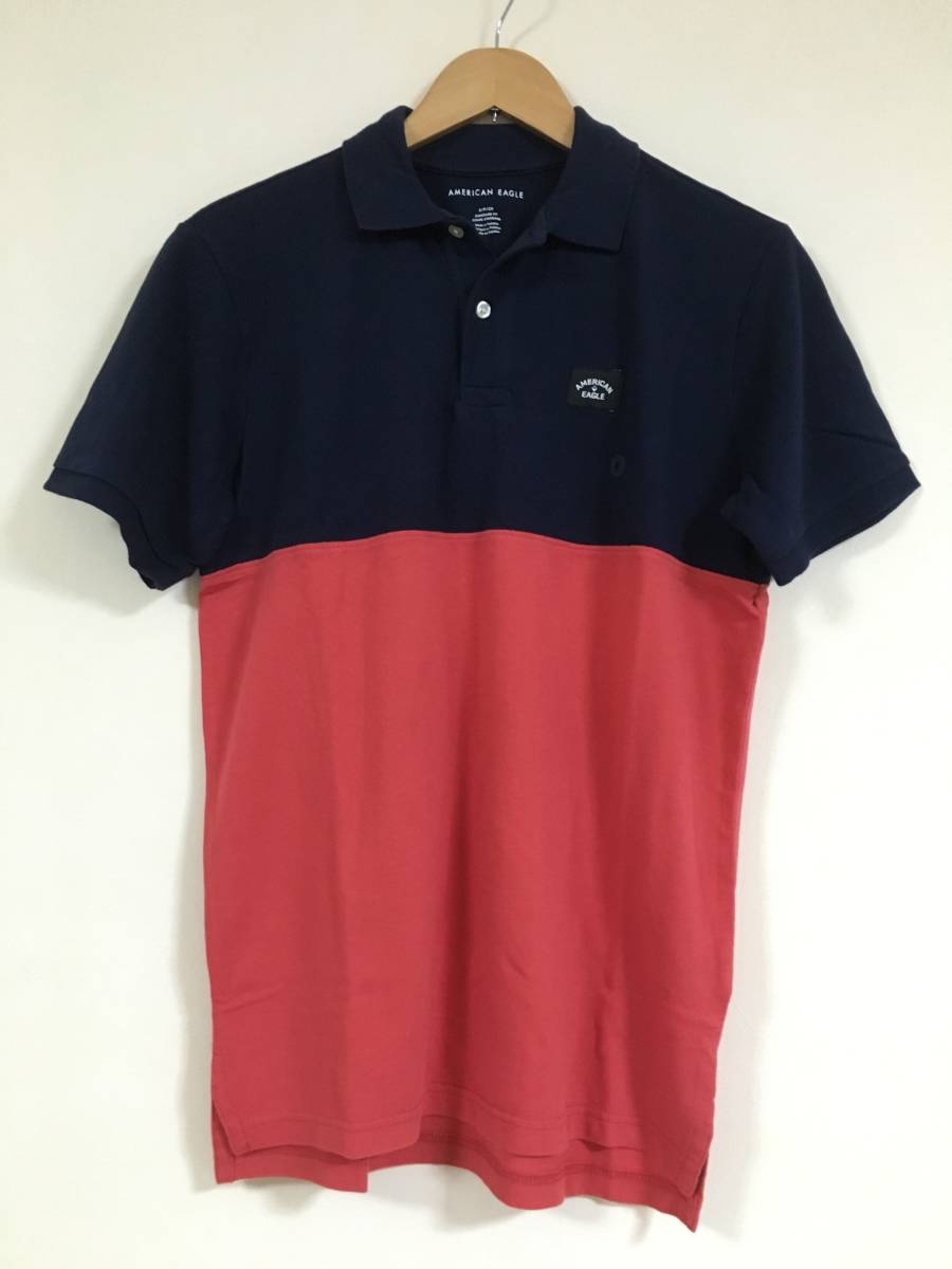 - セール! 残り2点! 正規品 本物 新品 アメリカンイーグル 秀逸 オシャレ ブロックポロ AMERICAN EAGLE 紺×赤 着心地抜群! 綿100% XS ( S
