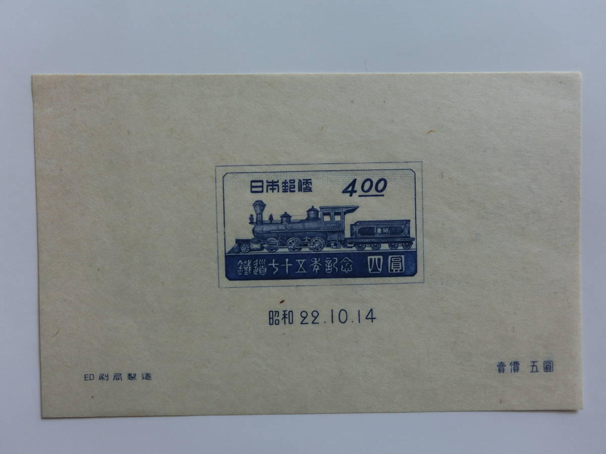 - 記念切手 鉄道75年記念 小型シート 昭和22年10月