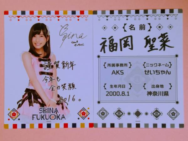 > AKB48 福袋2016 プロフィールカード 福岡聖菜 2枚セット
