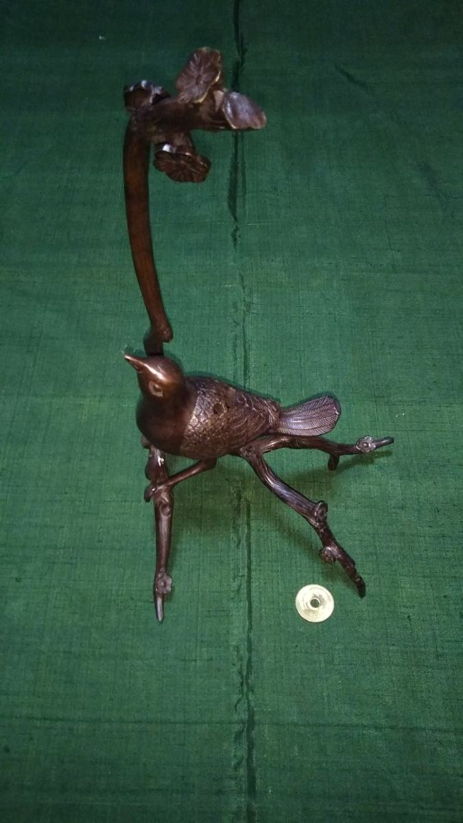 - 梅鶯ブロンズ製香炉(高さ約28㌢縦横幅約18㌢重さ約700㌘)骨董品