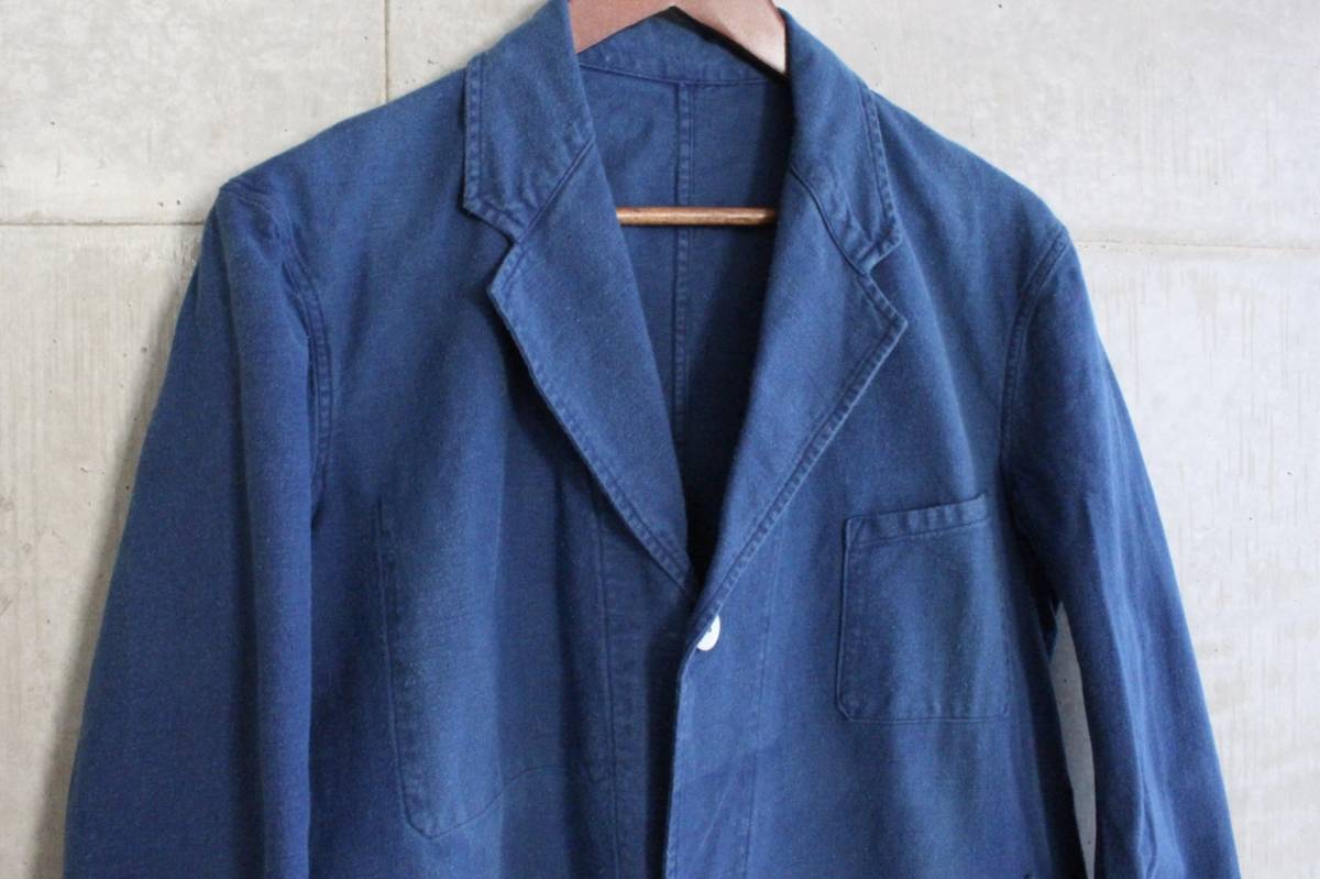 - 50s【 フランス ビンテージ 】インディゴダイ コットン ツイル ワークコート / 藍染 ブルー / ヨーロッパ アトリエ