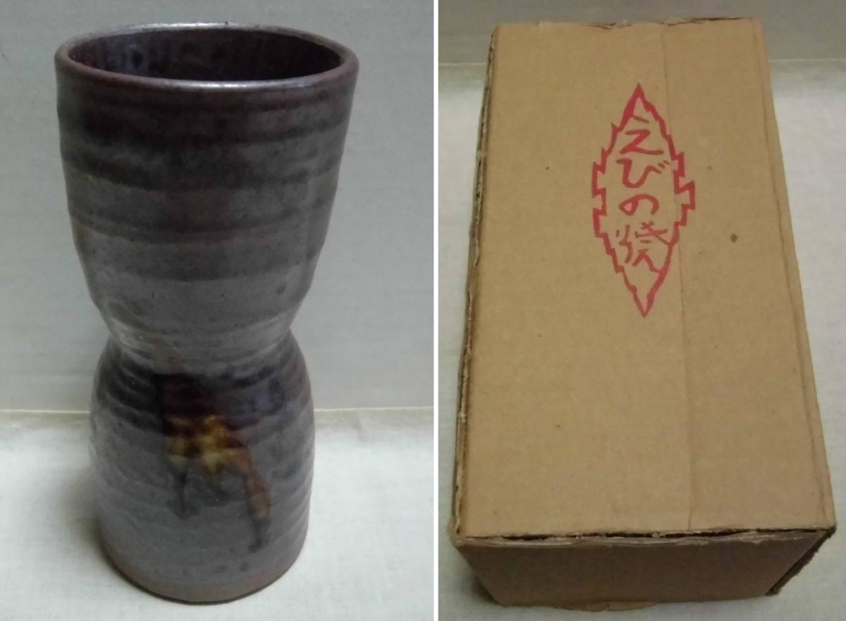- 味わい有る 小さめ 花瓶 一輪挿し えびの焼 大河平陶芸 箱入り 鼓形 宮崎民芸 飾り花瓶 置物 フラワーベース 花器 華道 花入 陶器 レトロ A