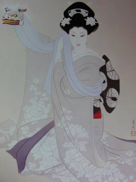 - 志村立美、【鏡獅子】、希少な大判額装用画集より、美品、新品額装付、送料込み