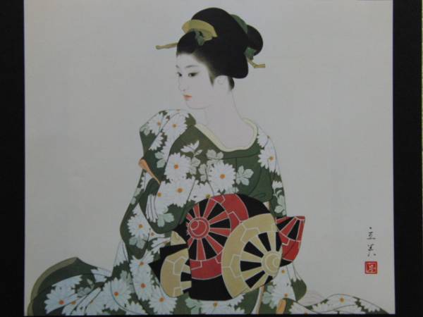 - 志村立美、【菊かおる】、希少な大判額装用画集より、美品、新品額装付、送料込み