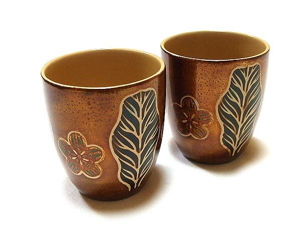 - 本漆器★偏光琥珀色湯呑み椀二客揃★珍品★変わり塗り
