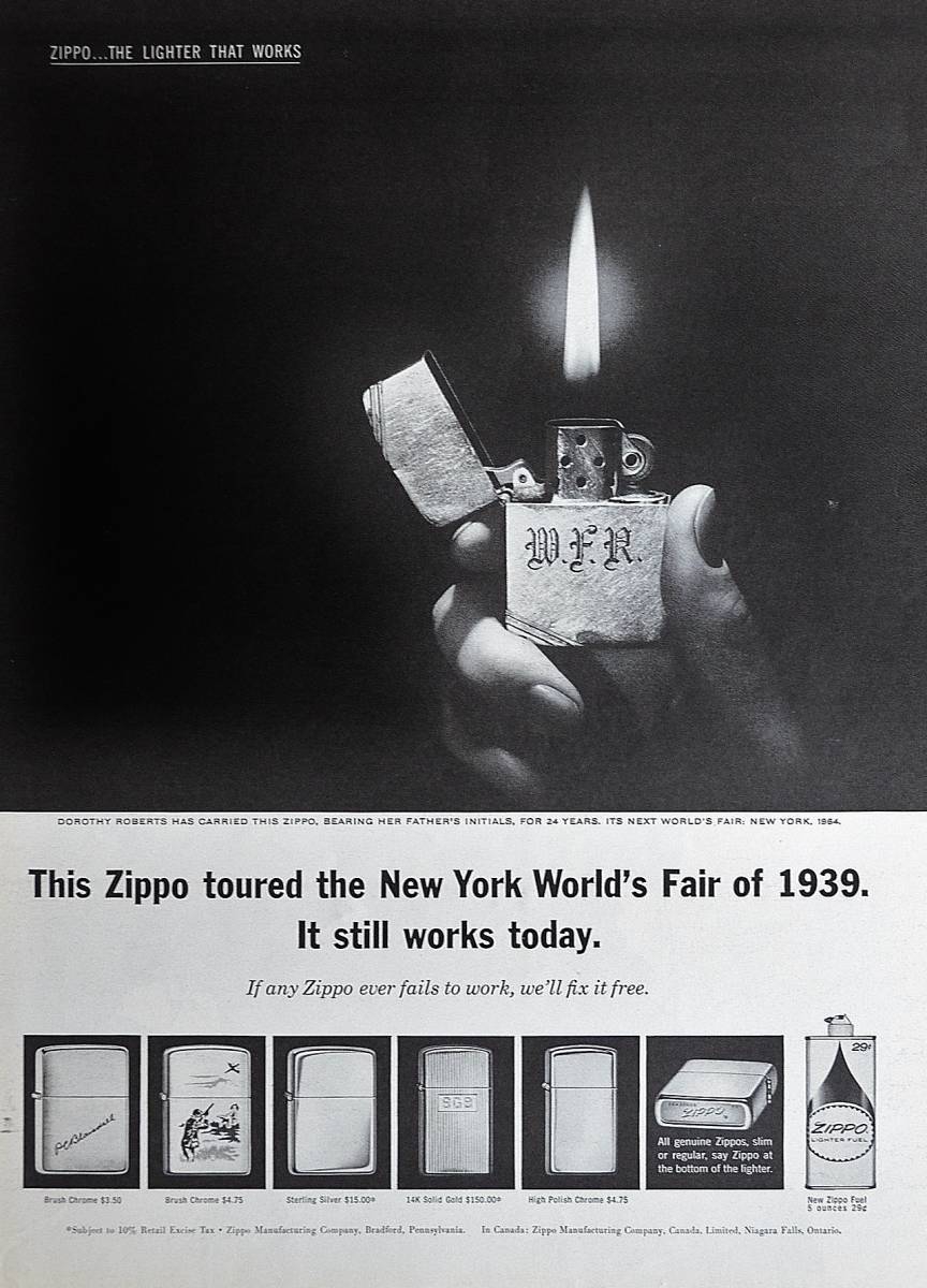 - 稀少!1960年代Zippo広告/ジッポー/ライター/煙草/シガー/New York World`s Fair/A