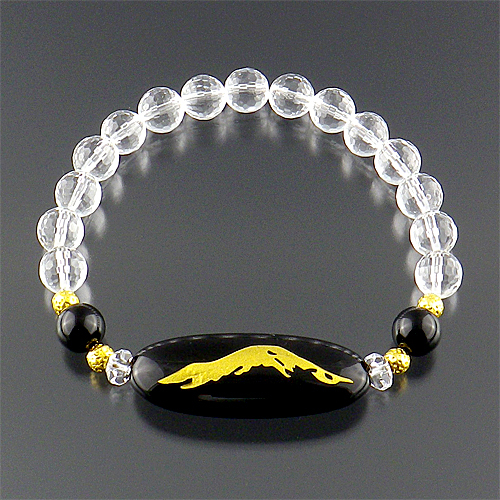 > ★人気★パワーストーン★不思議な霊力★開運★世界文化遺産★富士山★霊峰富士★ブレスレット★ブラックオニキスプレート&白水晶★